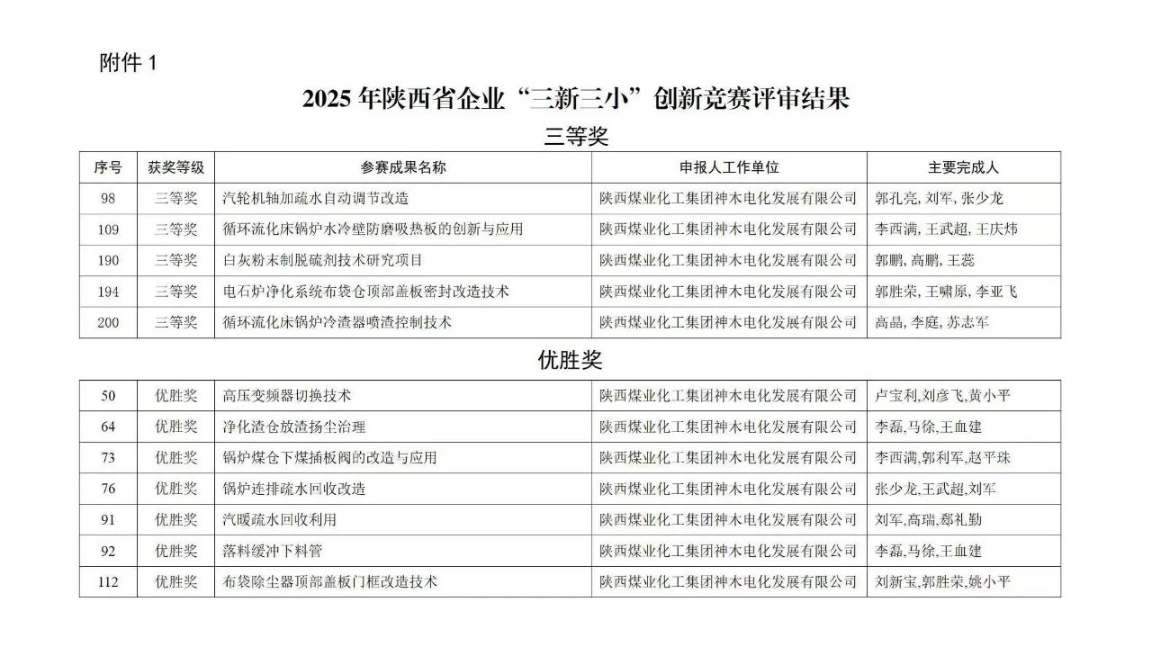 喜報!電化公司在2025年陜西省企業(yè)“三新三小”創(chuàng)新競賽中榮獲佳績