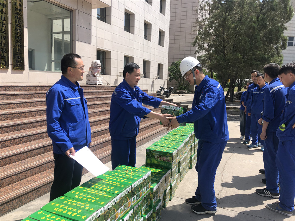 閱讀量:23206月6日上午,公司開展了一年一度的“夏日送清涼”活動,公司黨委書記、董事長辛文輝及工會副主席賀文強在辦公樓門前為堅守崗位的全體職工發(fā)放了芝麻香瓜共150多箱,為廣大職工帶來“家門”前的美味,并囑咐相關(guān)負(fù)責(zé)人,要把防暑降溫作為重點工作,落實好防暑降溫保健措施。...