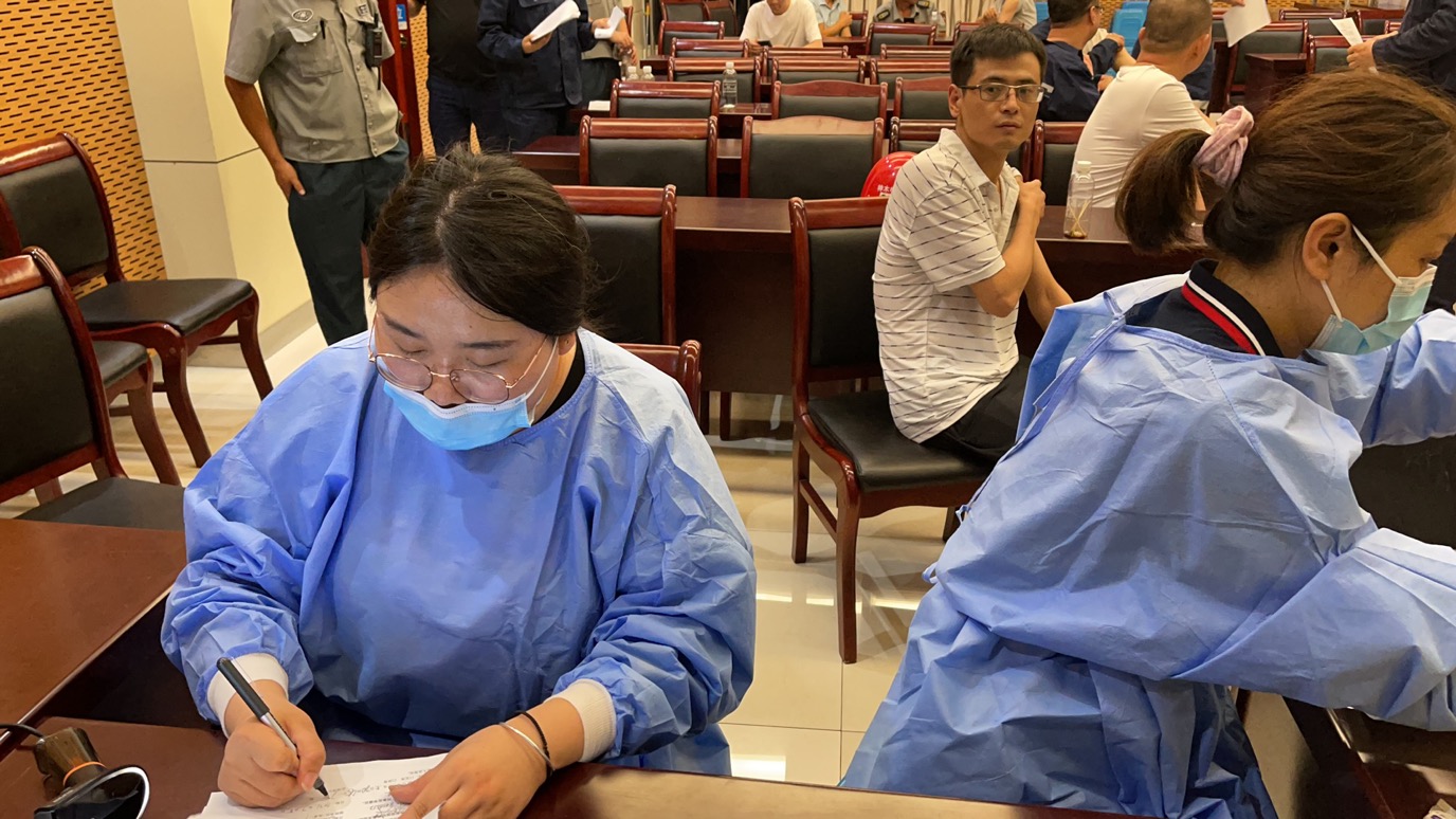 七一前夕,公司后勤管理服務部結(jié)合“我為群眾辦實事”活動,根據(jù)公司裝置搶修,工作任務重、時間緊等現(xiàn)實情況,積極與店塔鎮(zhèn)中心醫(yī)院溝通聯(lián)系,協(xié)商上門接種疫苗一事。經(jīng)過調(diào)查摸底、網(wǎng)上注冊、申領(lǐng)疫苗等一系列準備工作,7月4日下午店塔鎮(zhèn)中心醫(yī)院的四名醫(yī)護人員,分成兩組,到公司為廣大干部職工接種疫苗。疫苗接種在公司培訓教室進行,培訓教室內(nèi)設留觀區(qū)、休息區(qū)。四名醫(yī)護人員和組織人員一起加班加點,工作到深夜,為370余名職工接種了第一針新冠疫苗。