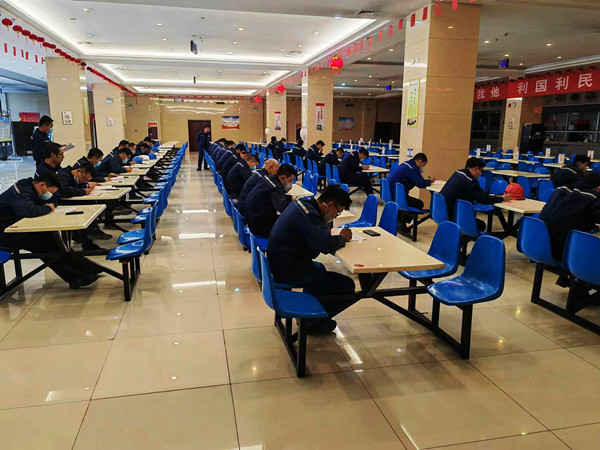 此次考試分為兩場,采用A、B卷閉卷考試方式進行。本著公平、公正的原則,考試現(xiàn)場人力資源部、生產(chǎn)技術(shù)部各派專人在考場巡視,進行全程監(jiān)督。考試內(nèi)容主要圍繞日常生產(chǎn)運行中的設(shè)備操作基礎(chǔ)知識和技能水平要求,旨在通過考試考察相關(guān)人員的設(shè)備理論知識的熟悉程度及設(shè)備操作能力。考場上的職工們奮筆疾書,表現(xiàn)出了良好的專業(yè)素養(yǎng)和極高的工作熱情。